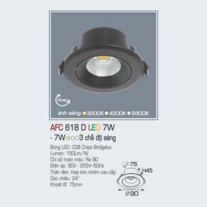 | 7W | Ø 70–75mm | 3000K / 4000K / 6500K | Từ 120.000đ |