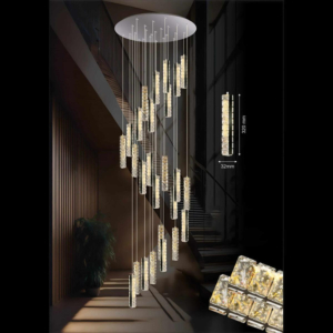 Nếu nhà bạn là biệt thự rộng và cầu thang nằm ở khu vực sảnh chính, có thể cân nhắc kết hợp thêm đèn ốp trần pha lê tròn biệt thự ở khu vực chiếu nghỉ để tăng độ sáng tổng thể và tạo điểm nhấn thẩm mỹ.
