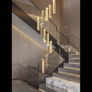 Loại đèn truyền thống nhưng vẫn rất hiệu quả khi chọn đúng kiểu tản sáng gián tiếp. Phù hợp với những cầu thang có bề ngang rộng, cần ánh sáng tổng thể mạnh.