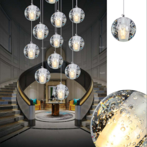 Đèn chùm hình cầu bubble là dòng đèn trang trí cao cấp sử dụng các quả cầu thủy tinh thổi tay với hiệu ứng bọt khí tự nhiên, tạo ánh sáng dịu mắt và vẻ đẹp nghệ thuật. Đây là lựa chọn được giới trẻ ưa chuộng cho phòng khách hiện đại nhờ thiết kế trẻ trung, dễ phối hợp với nhiều phong cách nội thất từ tối giản đến sang trọng.