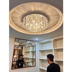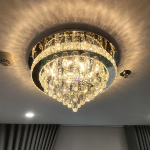 - Trần dưới 2,8m: không nên lắp đèn chùm, ưu tiên đèn ốp trần hoặc đèn mâm pha lê