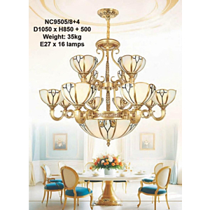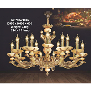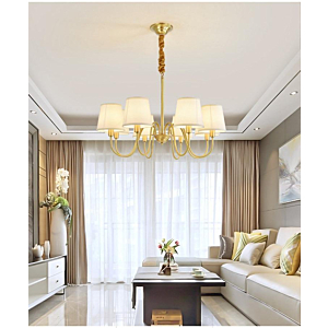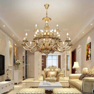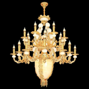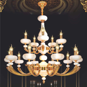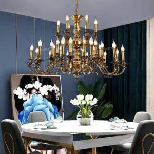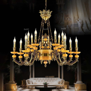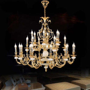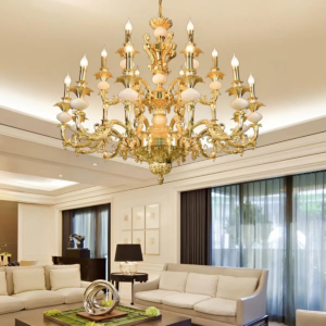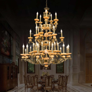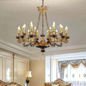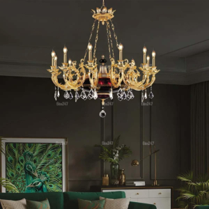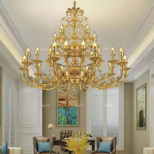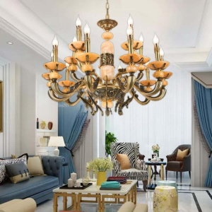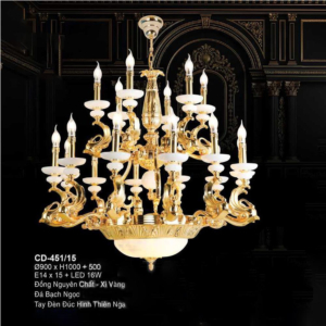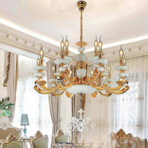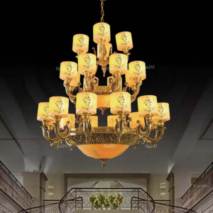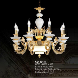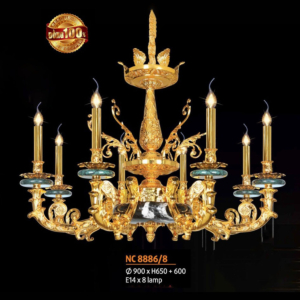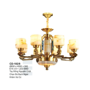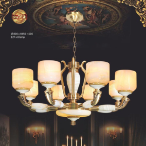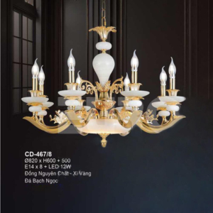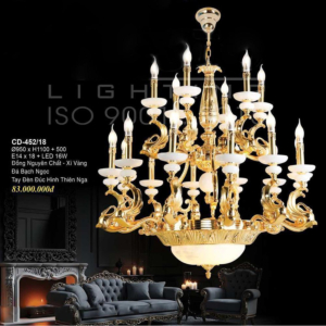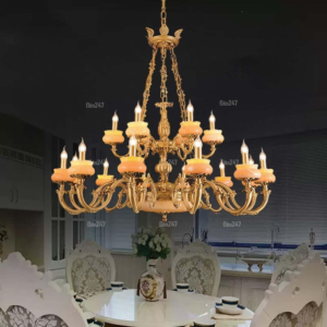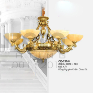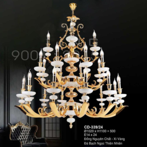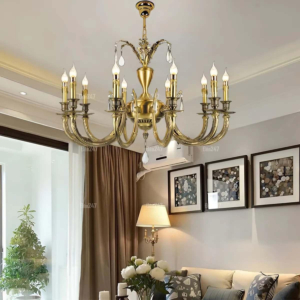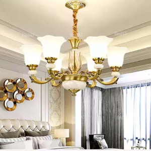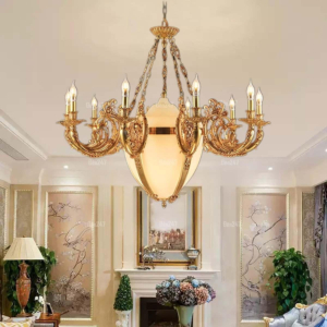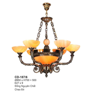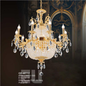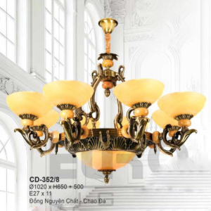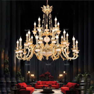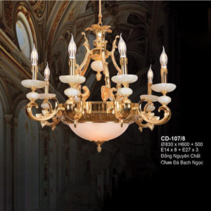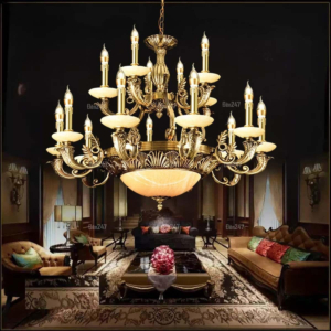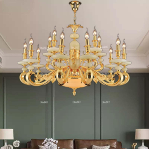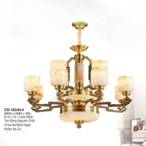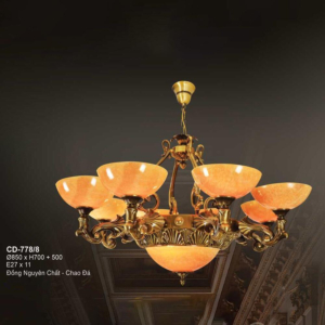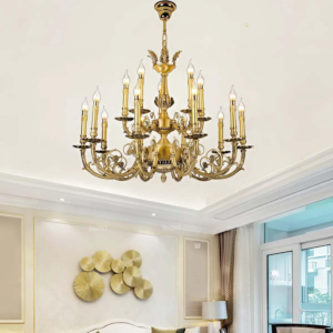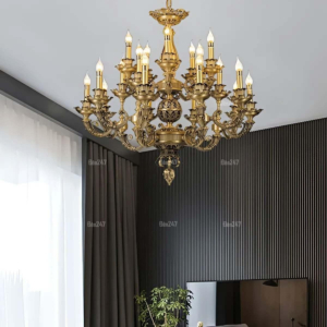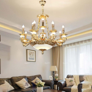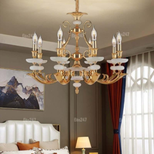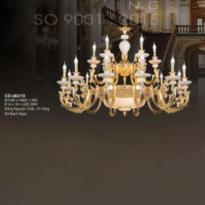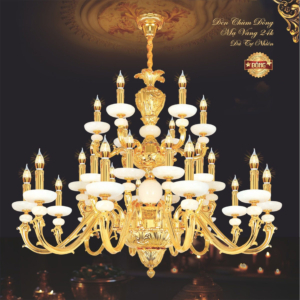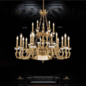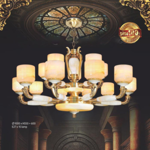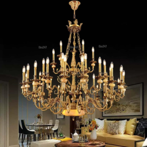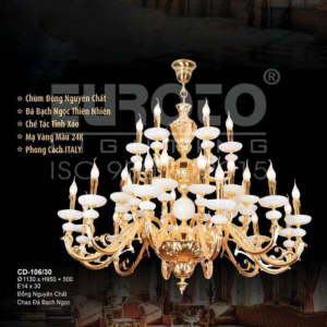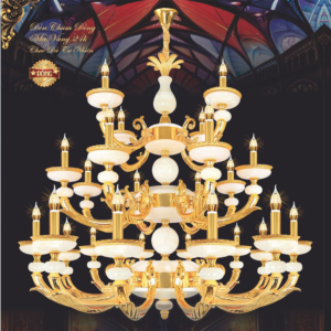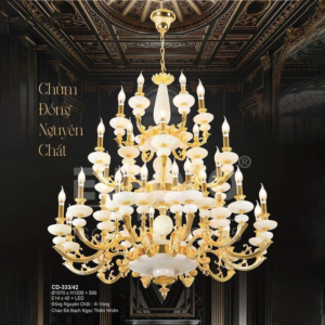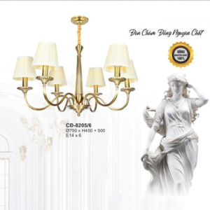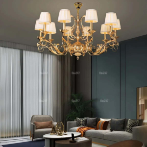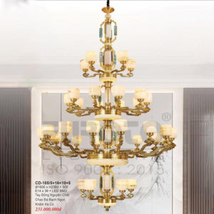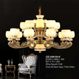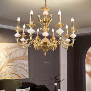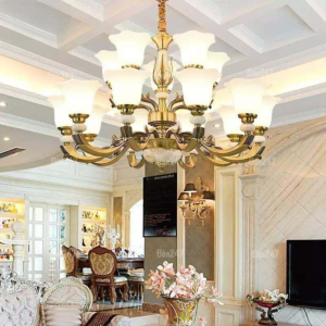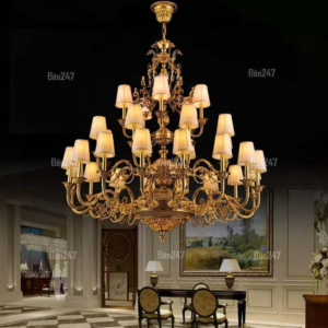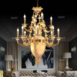 Đèn chùm Bắc Âu chất liệu đồng cao cấp: Dành cho không gian phòng khách rộng, yêu cầu đẳng cấp cao. Đồng nguyên chất hoặc đồng mạ vàng mang lại sắc vàng ấm áp đặc trưng, kết hợp chao đá tự nhiên hoặc đèn treo pha lê Asfour tạo nên sự giao thoa tinh tế giữa hiện đại và cổ điển.