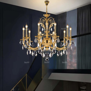 - Chất liệu cổ điển: đồng đúc, pha lê, chạm khắc tay
