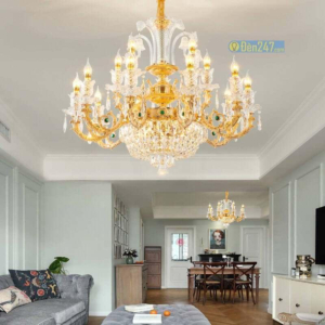 - Sản phẩm: Đèn chùm trang trí phòng khách — hiện đại, pha lê, đồng, tân cổ điển