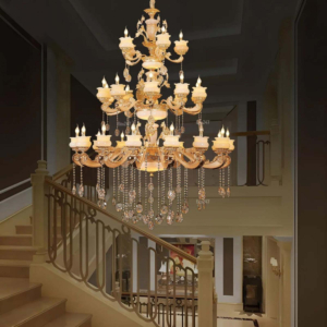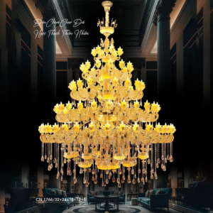 | 5m × 7m (35m²) – nhà ống rộng | Ø80 – 100cm | 14 – 27 bóng | Đèn chùm đồng cổ điển, đèn pha lê nhiều tầng |