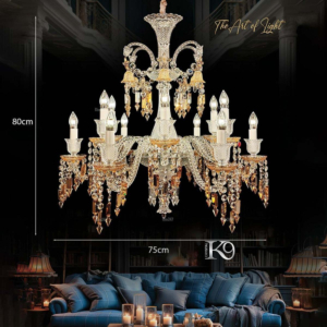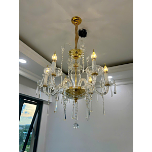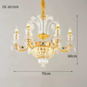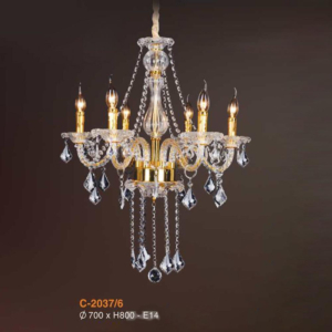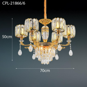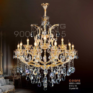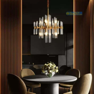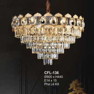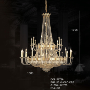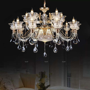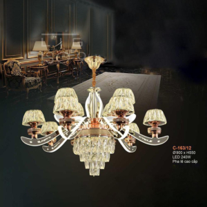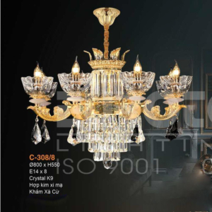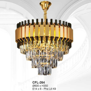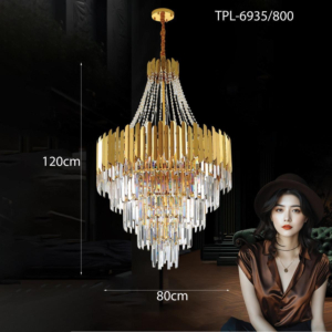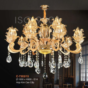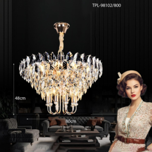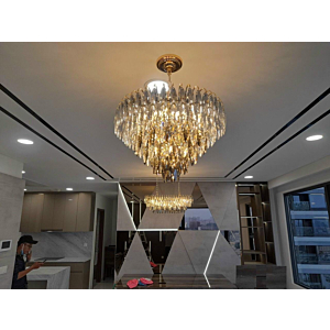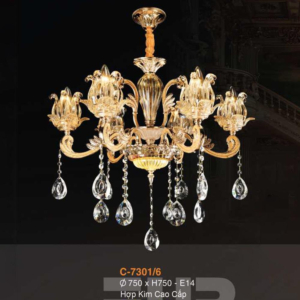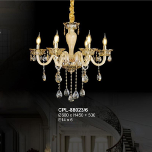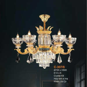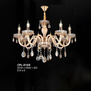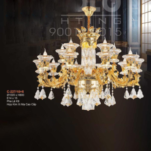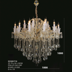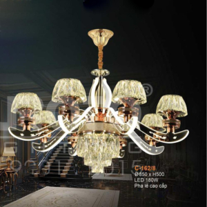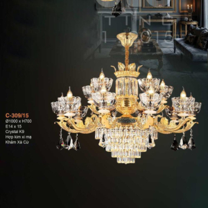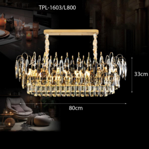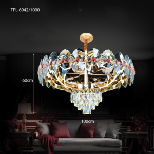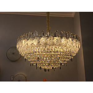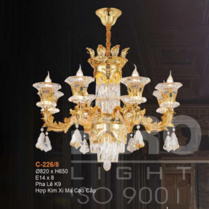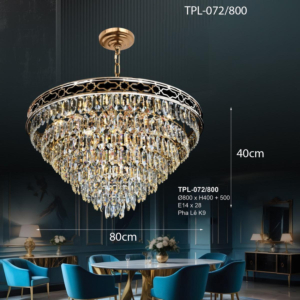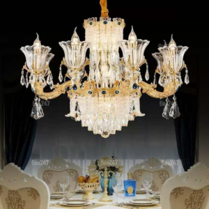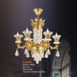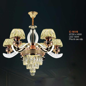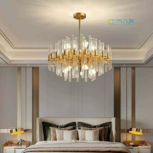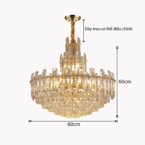 - Chất liệu: Pha lê K9, đồng mạ vàng 24K, hợp kim sơn tĩnh điện, thủy tinh cao cấp