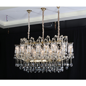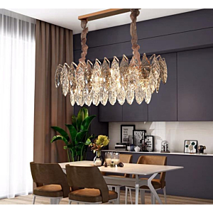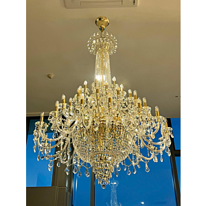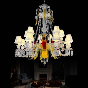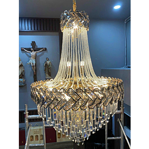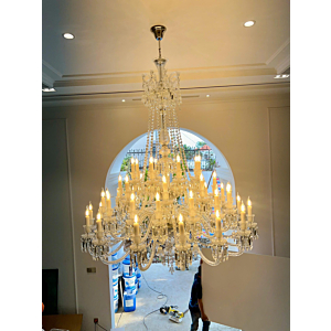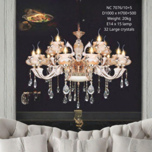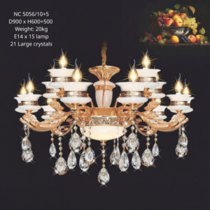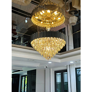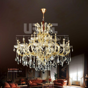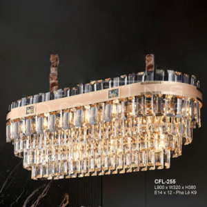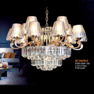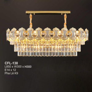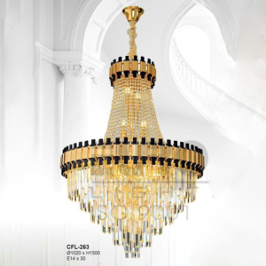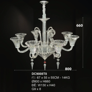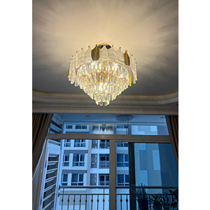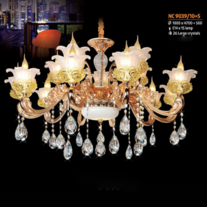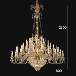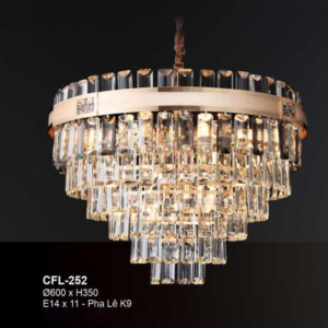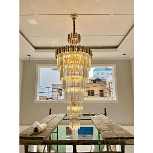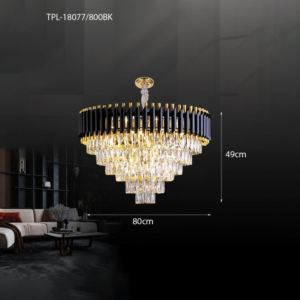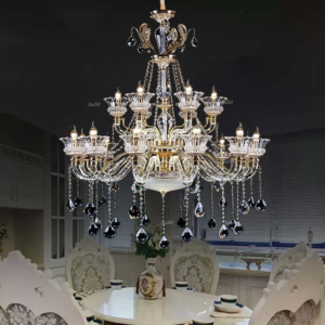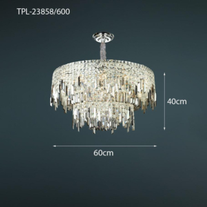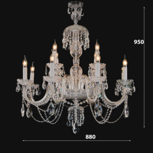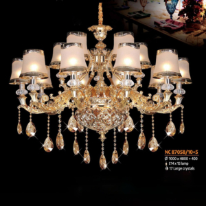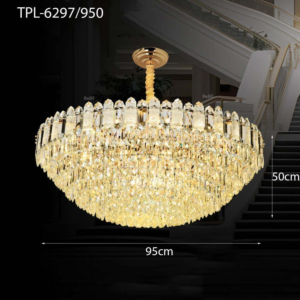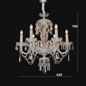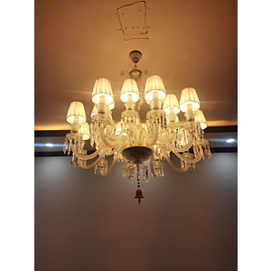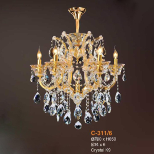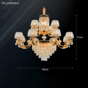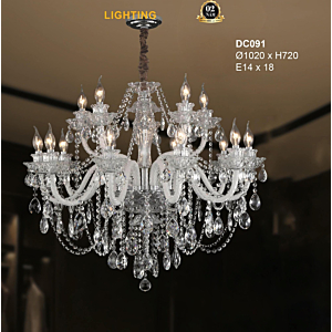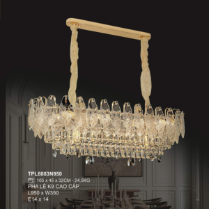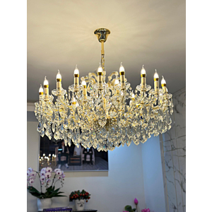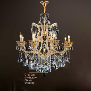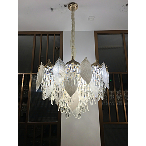 - Chất liệu: Pha lê K9, đồng mạ vàng 24K, hợp kim sơn tĩnh điện, thủy tinh cao cấp