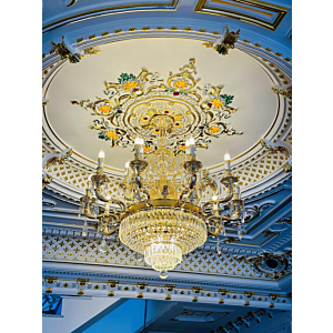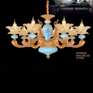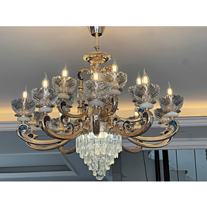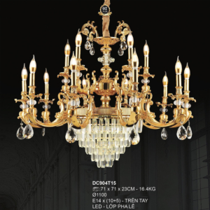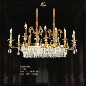 Đèn chùm đồng nguyên chất mạ vàng 24K mang đến vẻ đẹp hoàng gia, bề thế nhất trong các dòng đèn tân cổ điển. Khung đồng được đúc nguyên khối rồi chạm khắc hoa văn bằng tay, đảm bảo từng chi tiết sắc nét và độc nhất. Trọng lượng đèn đồng thường nặng hơn 2-3 lần so với đèn hợp kim, đòi hỏi hệ thống treo chắc chắn nhưng đổi lại độ bền vượt trội — đèn đồng có thể giữ nguyên vẻ đẹp suốt hàng chục năm mà không bị oxy hóa nhờ lớp mạ vàng bảo vệ.