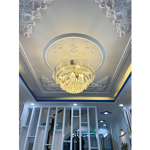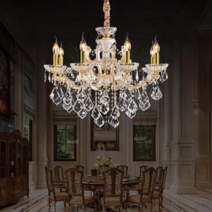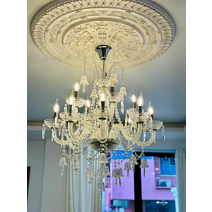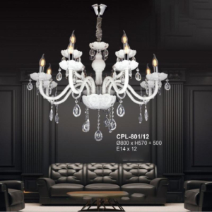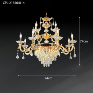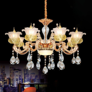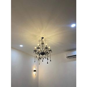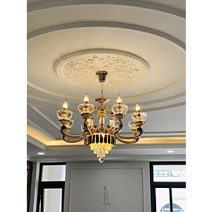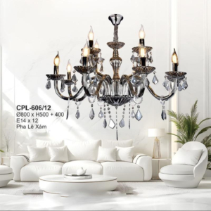Đây là lựa chọn tối ưu cho gia đình muốn sở hữu đèn chùm tân cổ điển với ngân sách hợp lý. Hợp kim nhôm-kẽm được sơn tĩnh điện nhiều lớp tạo bề mặt mịn màng, chống trầy xước và chống oxy hóa tốt. Kiểu dáng không thua kém đèn đồng nhưng trọng lượng nhẹ hơn đáng kể, dễ dàng lắp đặt cho trần thạch cao hoặc trần bê tông nhà phố.