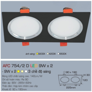 - Mã 12W x 2 (AFC 758/2, AFC 768/2) giá cao hơn nhưng cho ánh sáng mạnh, phù hợp showroom.