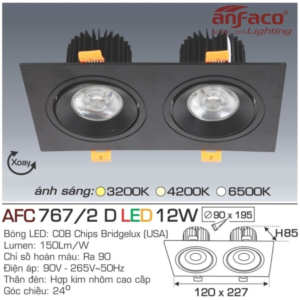 - Sản phẩm: Đèn LED âm trần Anfaco hình chữ nhật 2 bóng (bát đôi), dòng chiếu điểm COB
