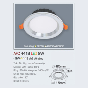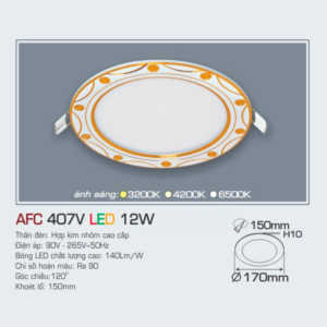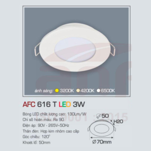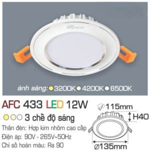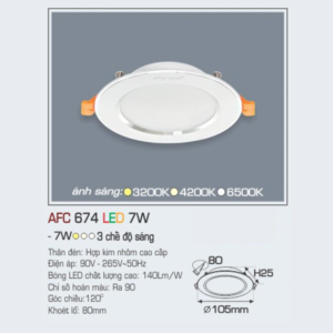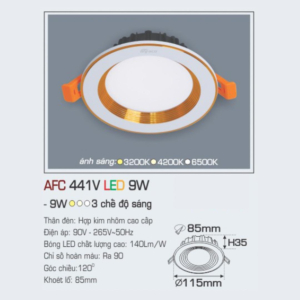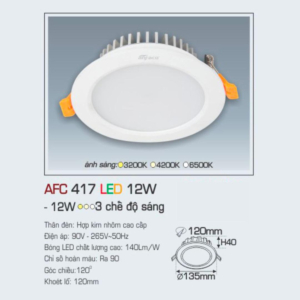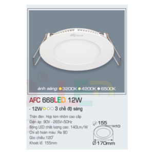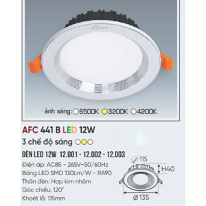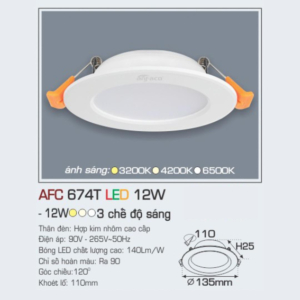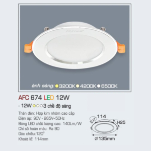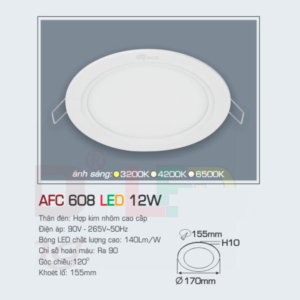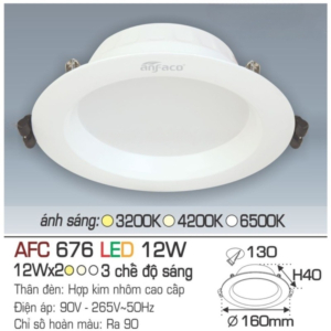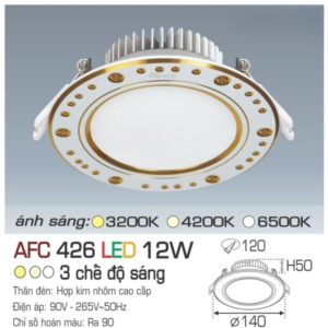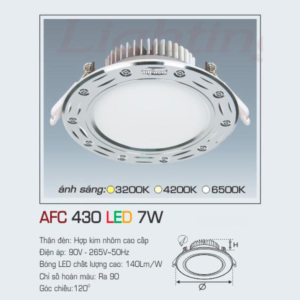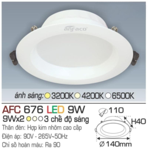 - Sản phẩm: Đèn led âm trần Anfaco hình tròn, góc chiếu tán quang 120 độ