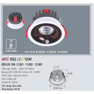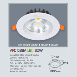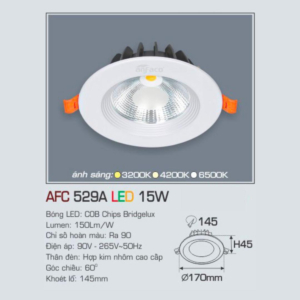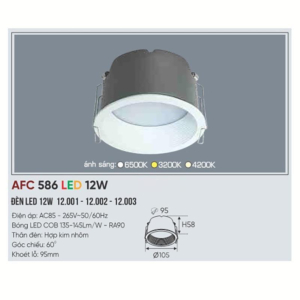 - Sản phẩm: Đèn led âm trần tròn Anfaco, công nghệ LED COB, góc chiếu 60 độ