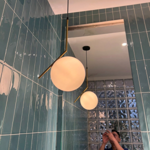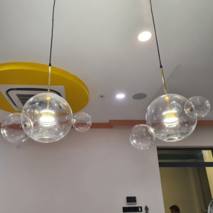 - Đèn 1 bóng chỉ phù hợp bàn tròn nhỏ 2 – 4 người hoặc quầy bar