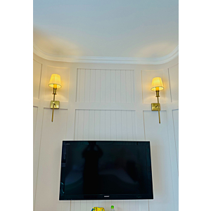 Đèn trang trí treo tường là dòng đèn có phần chao hoặc khung đèn nhô ra khỏi bề mặt tường, thường sử dụng cánh tay đèn cong hoặc thẳng. Mẫu đèn này mang đậm chất cổ điển hoặc tân cổ điển, thường được chế tác từ đồng, hợp kim mạ vàng kết hợp pha lê hoặc thủy tinh. Đèn treo tường phù hợp với phòng khách biệt thự, hành lang dài và các không gian cần nhấn mạnh sự sang trọng.