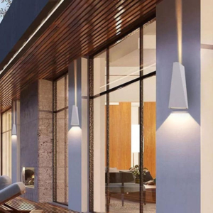 Đèn hắt tường (hay đèn chiếu tường) phát ra chùm sáng hắt lên hoặc hắt xuống bề mặt tường, tạo hiệu ứng ánh sáng gián tiếp rất nghệ thuật. Dòng đèn này thường dùng để làm nổi bật tranh treo tường, mảng tường đá, cột trang trí hoặc mặt tiền ngoại thất. Đèn hắt phù hợp với phong cách hiện đại, tối giản và công nghiệp.