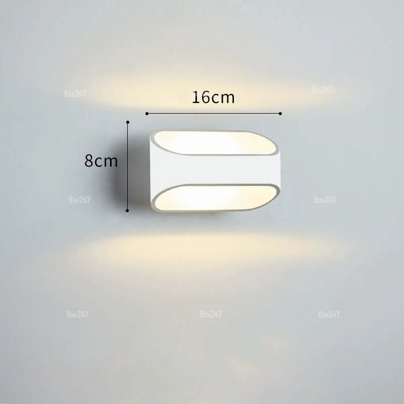 Đặc điểm: Đèn hắt tường sáng 2 đầu. Mặt đèn cắt khuyết giúp tỏa ánh sáng phía trước và hắt sáng 2 chiều lên tường.