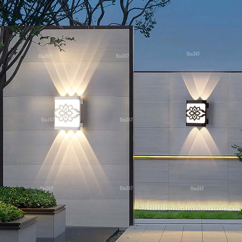 Đặc điểm: Đèn 6 tia sáng với ánh sáng vàng. Với 3 tia sáng hắt trên và 3 tia sáng hắ dưới và đèn sáng ở giữa. Đèn được họa tiết hoa trính giữa hình chữ nhật. Khi sáng tạo hiệu ứng ánh sáng nổi bật. Chất liệu nhôm đúc + tấm sản sáng Acrylic.