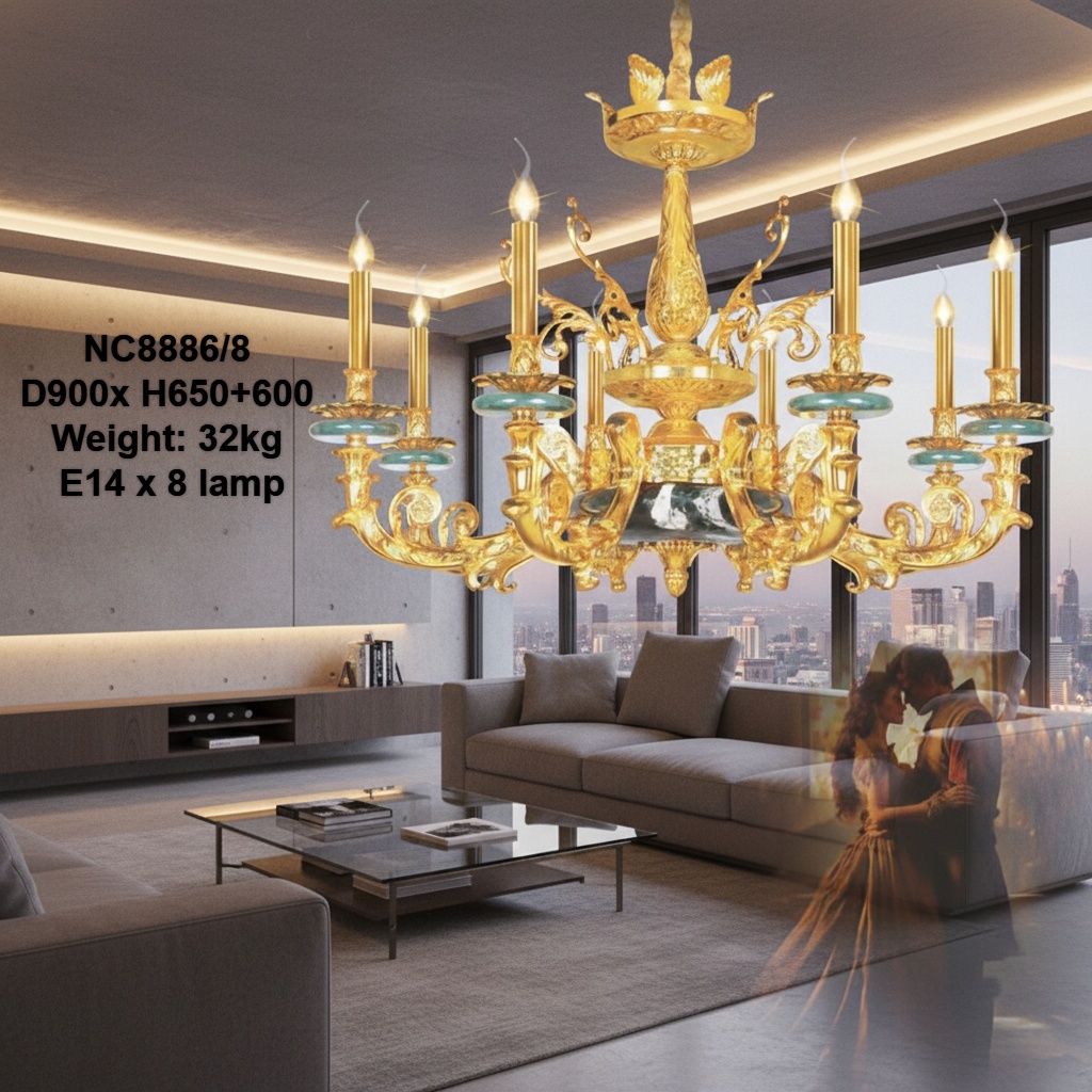 Đèn chùm đồng mạ vàng NC88868