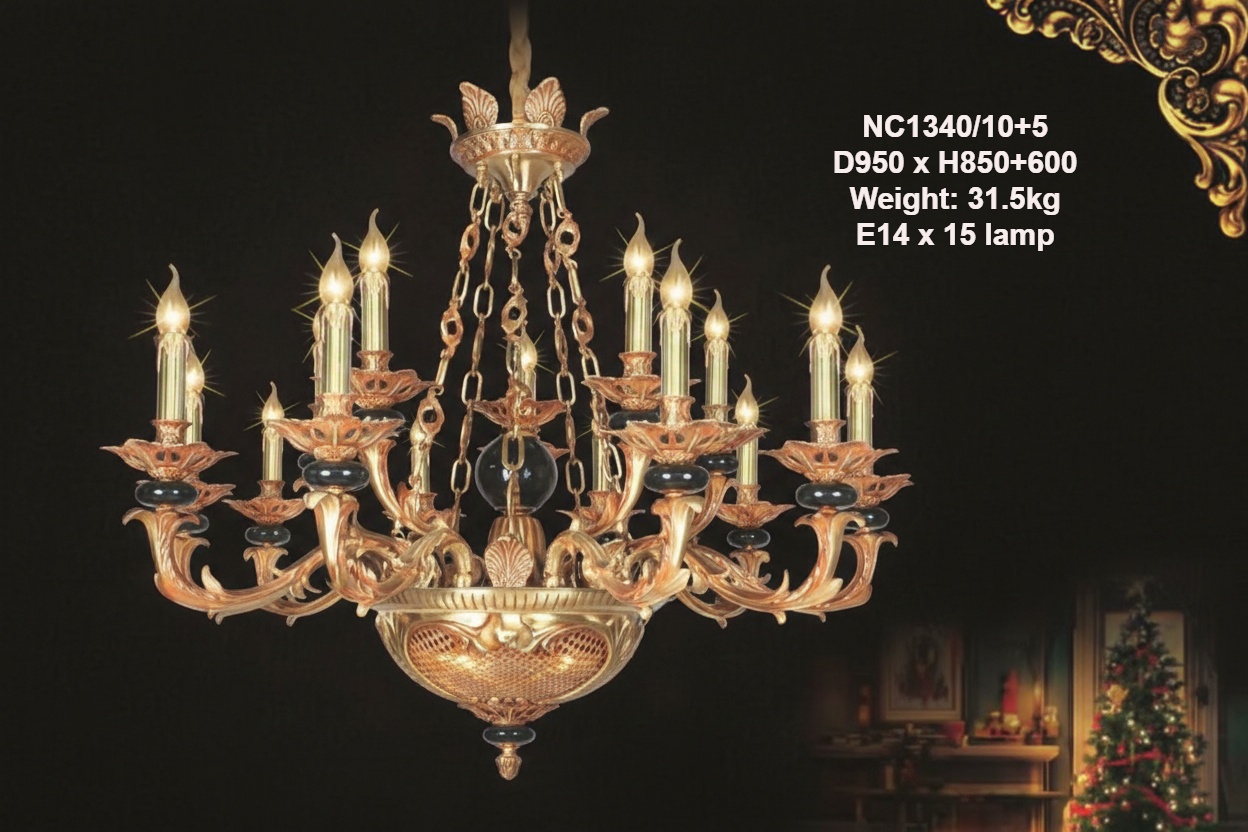 Đèn chùm đồng nguyên chất NC1340/10+5
