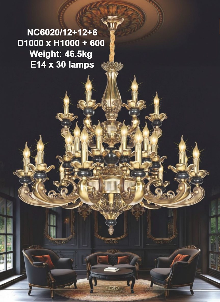 Đèn chùm đồng nguyên chất NC6020/12+12+6