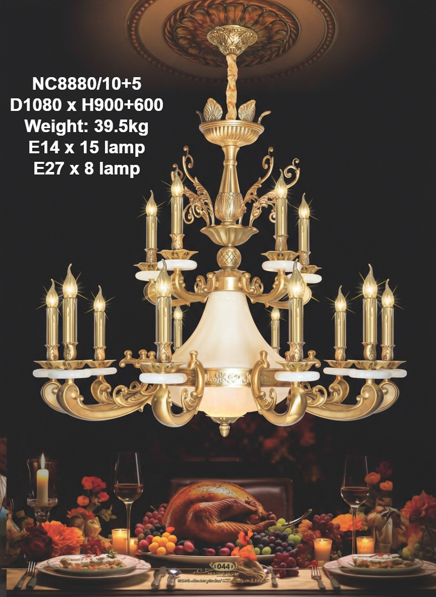 Đèn chùm đồng nguyên chất NC8880/10+5