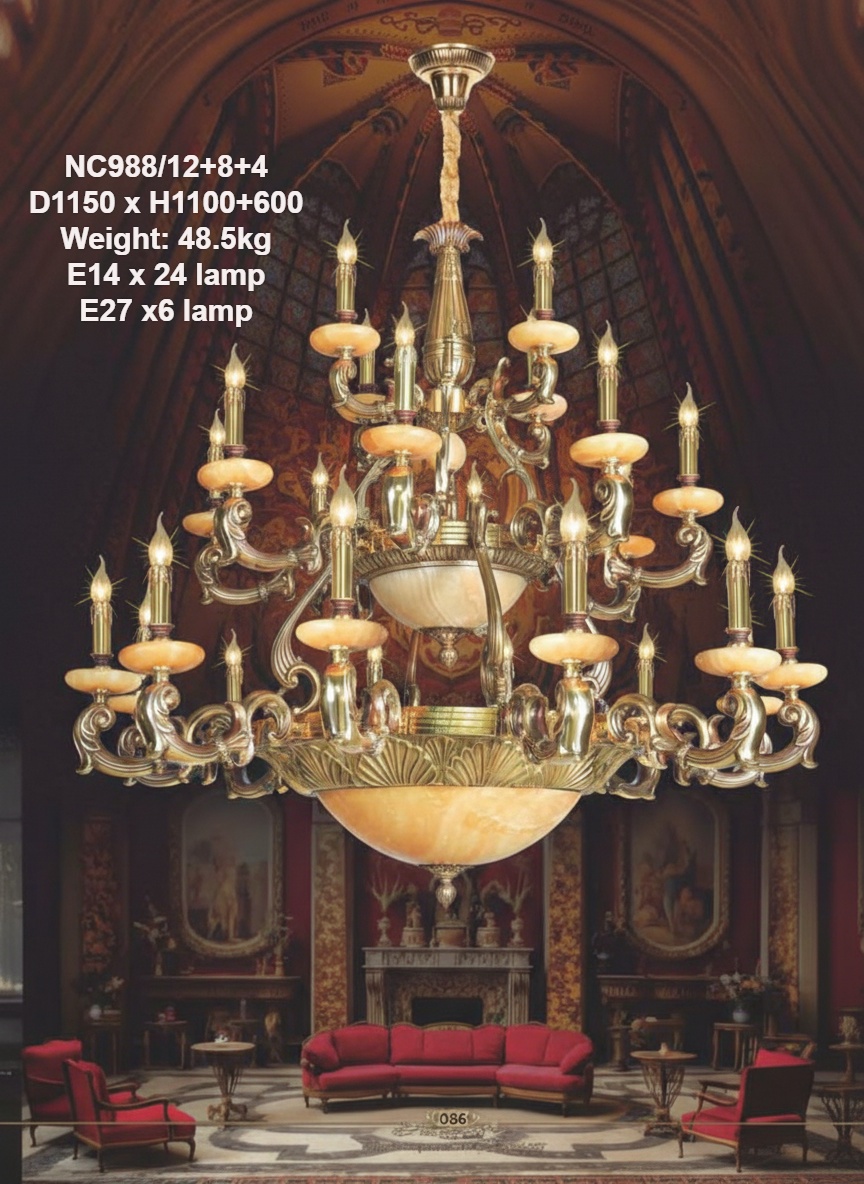Đèn chùm đồng nguyên chất NC988/12+8+4