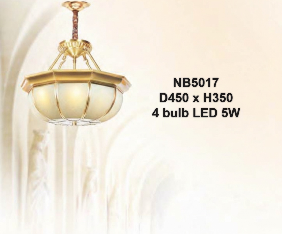 Đèn chùm đồng thủ công chao kính NB5017