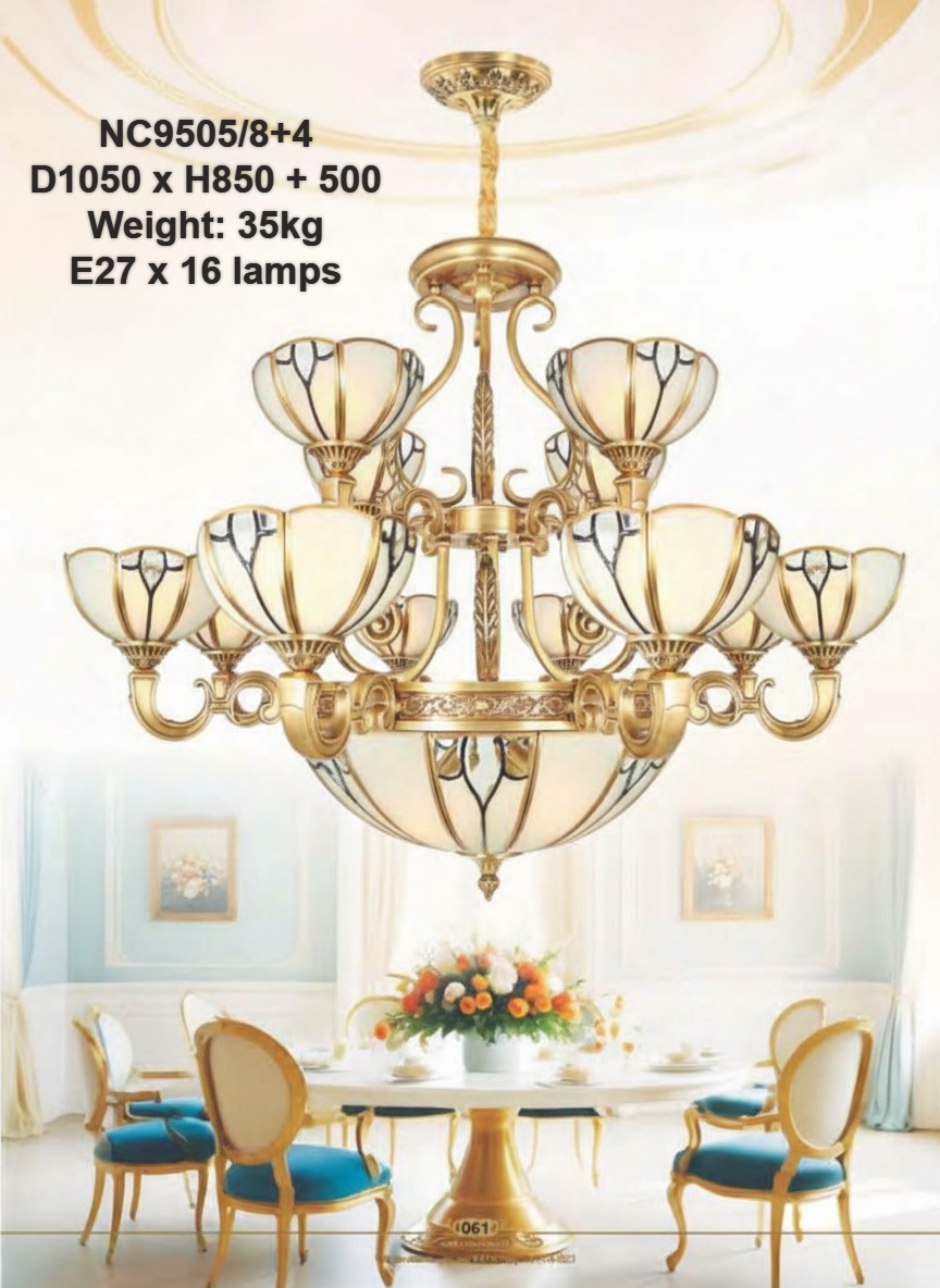 Đèn chùm đồng thủ công chao kính NC9505/8+4