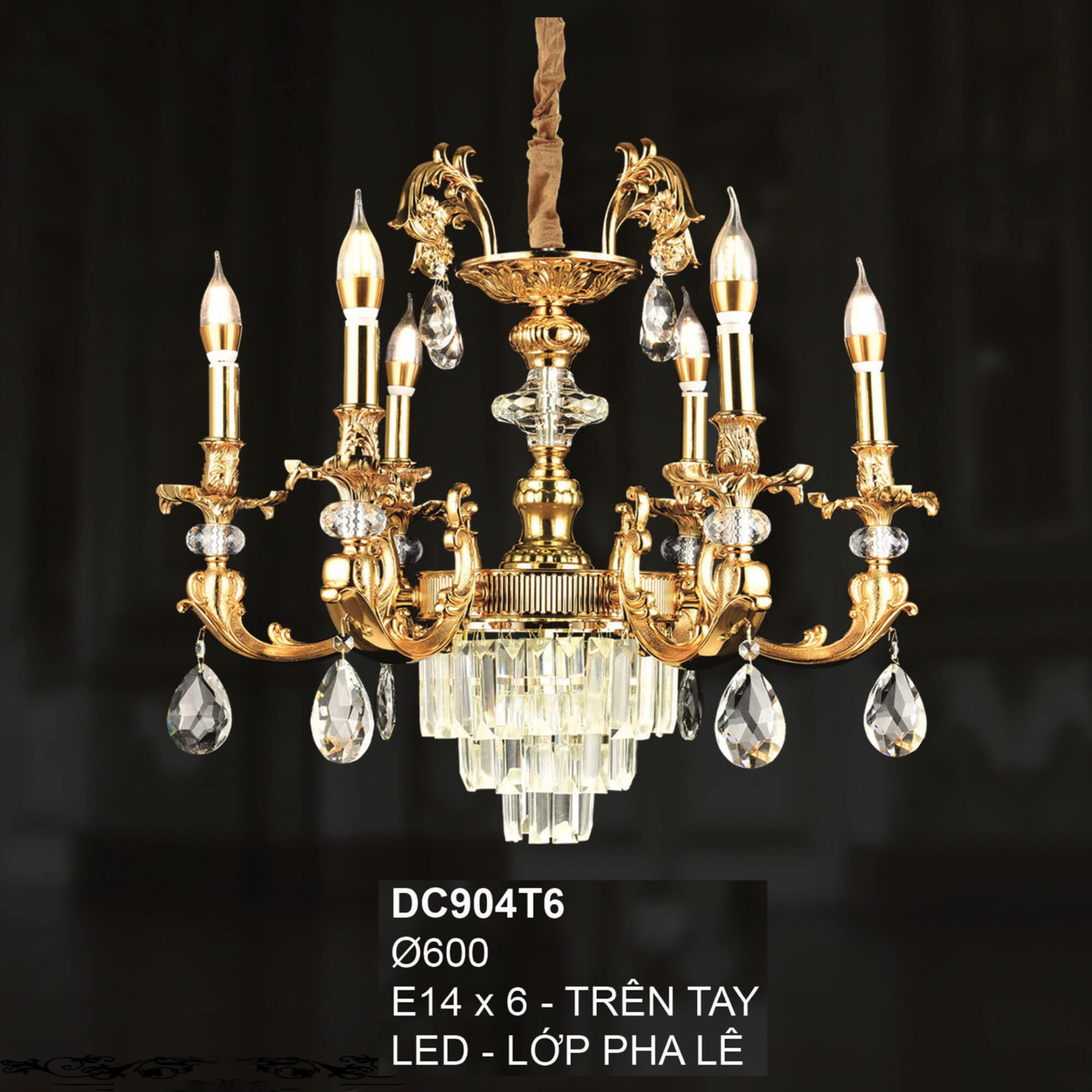 Đèn chùm pha lê cao cấp 6 tay DC904T6