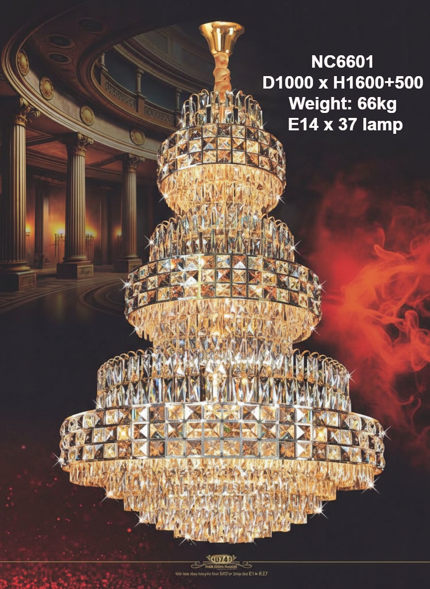 Đèn chùm pha lê K9 thông tầng thân hợp kim NC6601