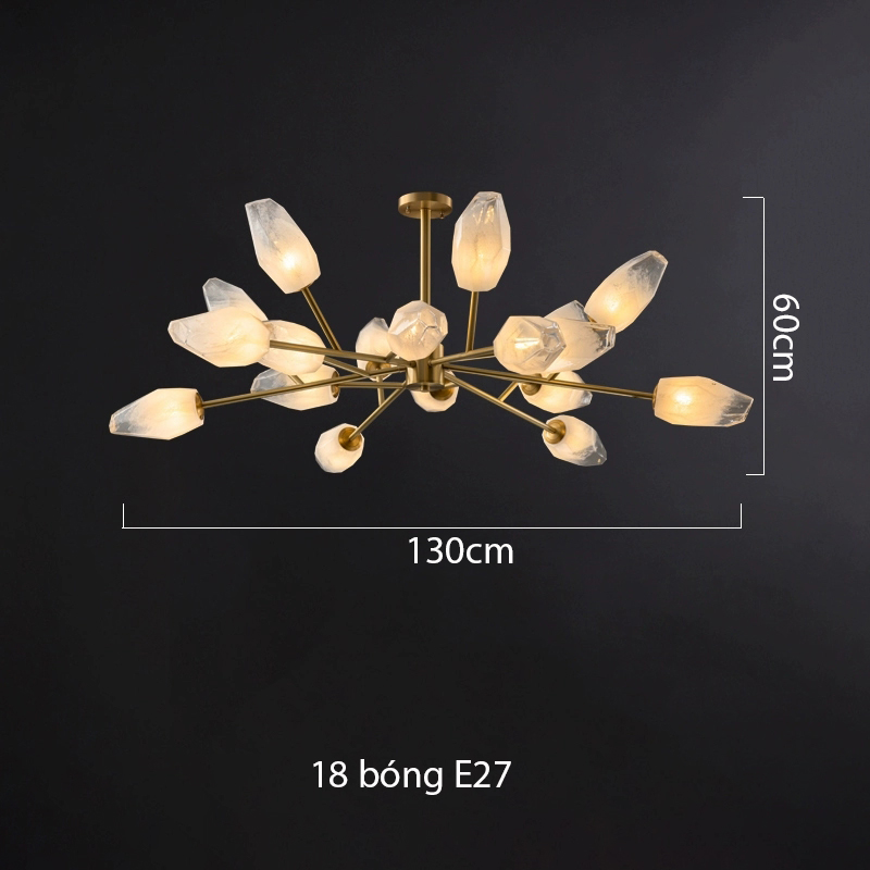 Đặc điểm: Đèn được thiết kế 18 tay đèn. Chóa đèn được tạo hình như 1 bông hoa lớn với bóng led E27 dễ dàng thay thế, sửa chữa và lắp đặt. Đèn dễ dàng vệ sinh, thay thế và lắp đặt. Đèn có thể điều chỉnh chiều cao để phù hợp với từng vị trí và không gian.