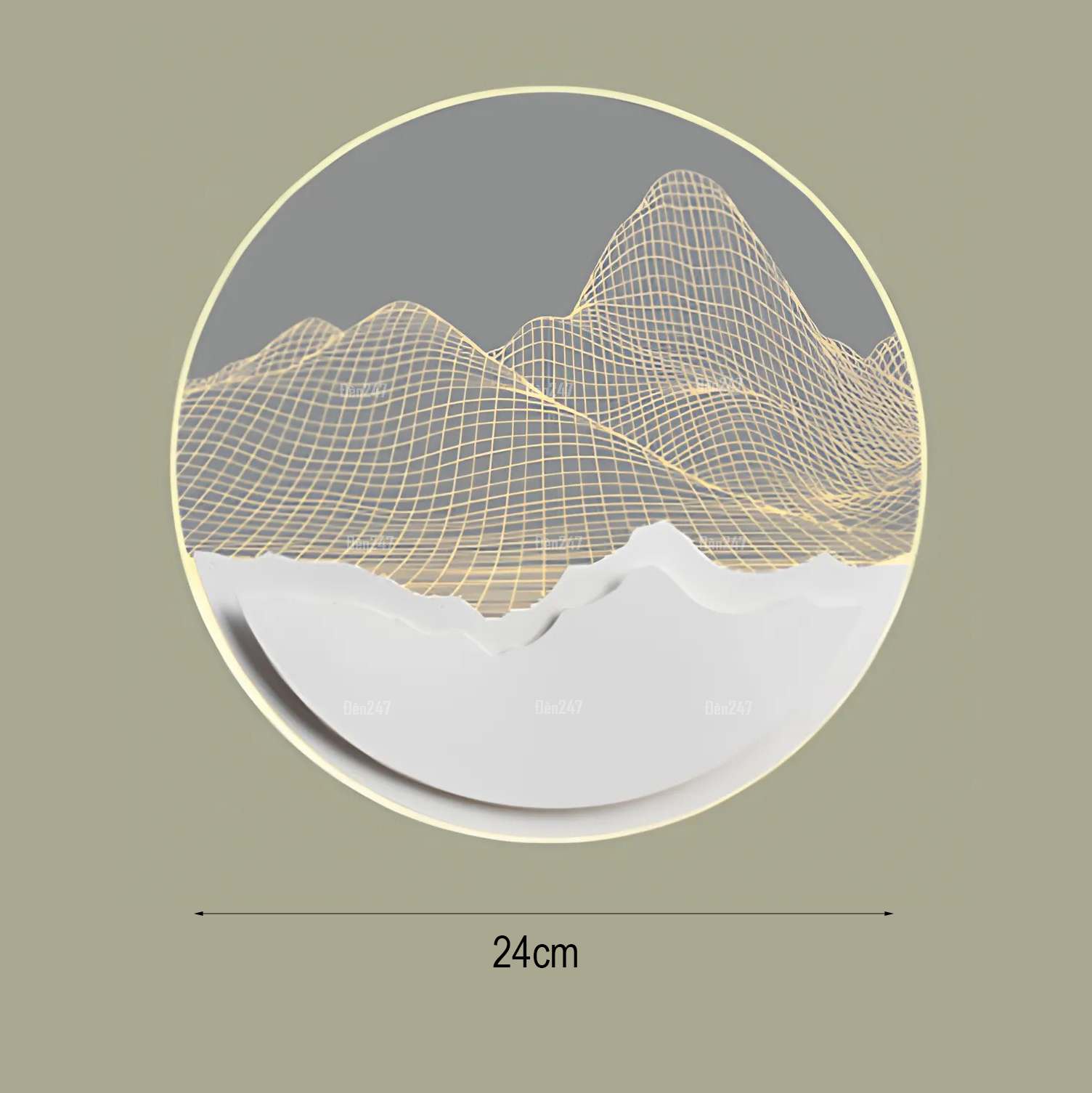 Đặc điểm: Đèn tranh hình tròn tạo độ sâu. Mica được khắc laser hình đồi núi tạo hiệu ứng ánh sáng khi bật đèn.