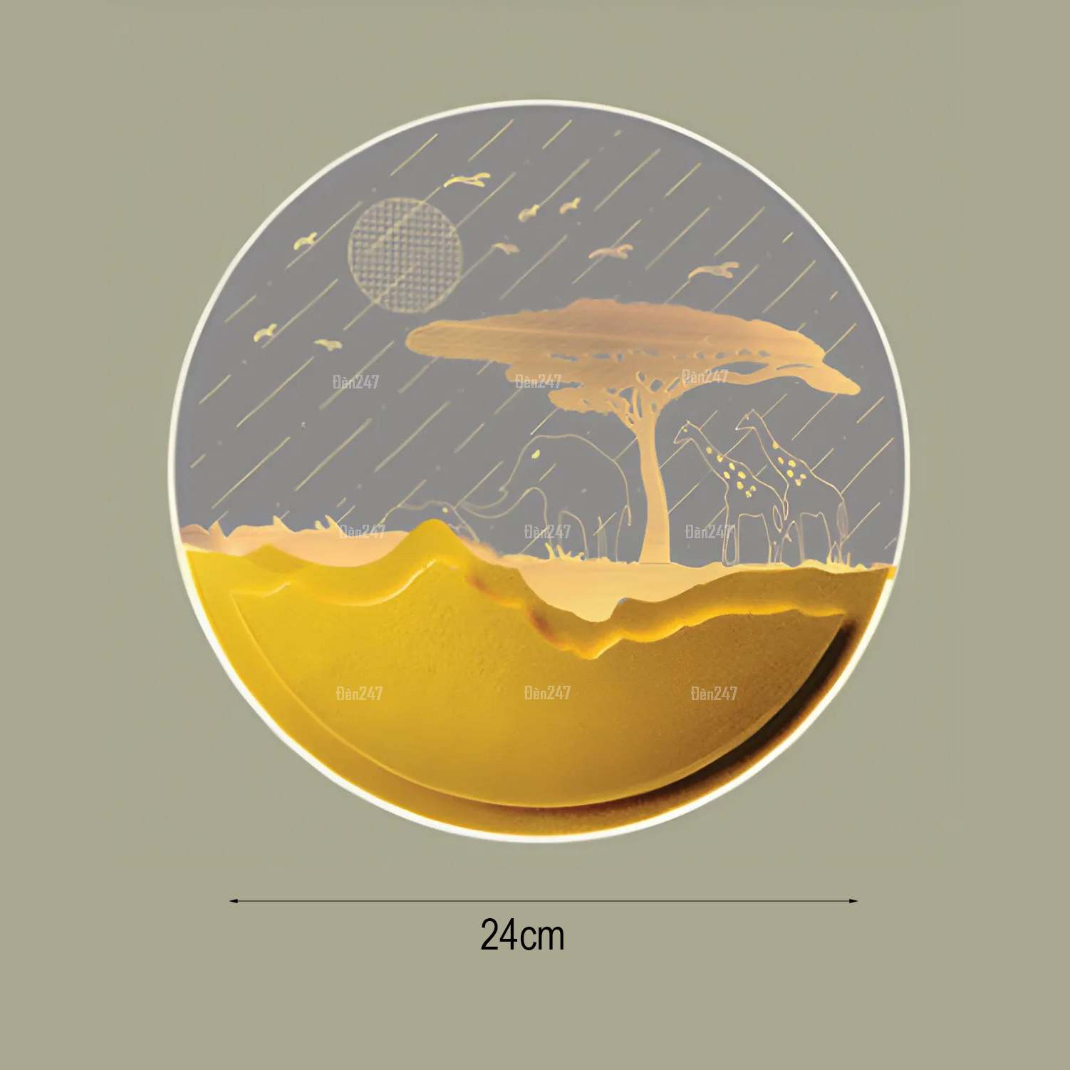 Đặc điểm: Đèn tranh hình tròn tạo độ sâu. Mica được khắc laser hình thiên nhiên hoan giã tạo hiệu ứng ánh sáng khi bật đèn.