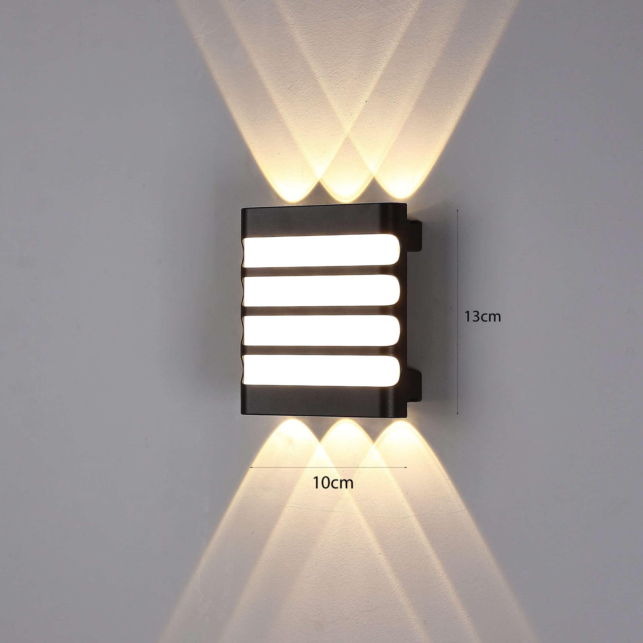 Đặc điểm: Đèn 4 tia sáng với ánh sáng vàng. Với 2 tia sáng hắt trên và 2 tia sáng hắ dưới và đèn sáng ở giữa. Khi sáng tạo hiệu ứng ánh sáng nổi bật. Chất liệu nhôm đúc + tấm sản sáng Acrylic.
