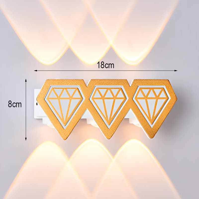 Đặc điểm: Đèn 6 tia sáng, 3 tia hắt trên và 3 tia sáng hắt dưới. Đèn led hình kim cương 6 tia sáng độc đáo. Đèn thường được kết hợp với nhau tạo thành cụ kết nối sánh sáng liên tục.