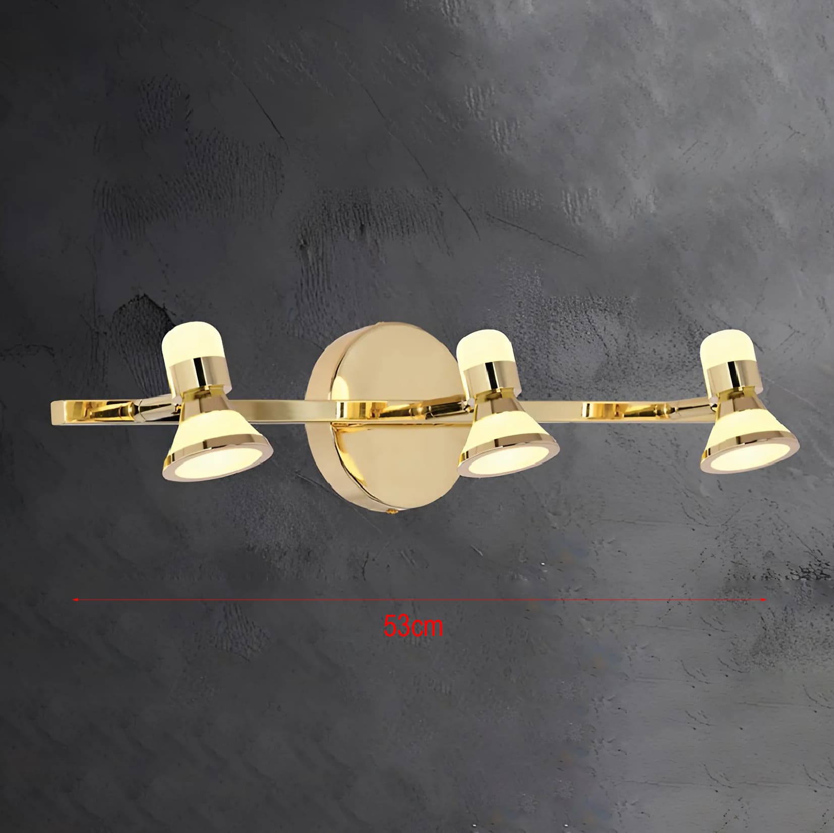 - Đặc điểm : Thân đèn màu vàng. Đèn có 3 bóng. Bóng đèn có thể điều chỉnh hướng chiếu linh hoạt, giúp chiếu và các điểm tạo điểm nhấn, tập trung ánh sáng tốt hơn.