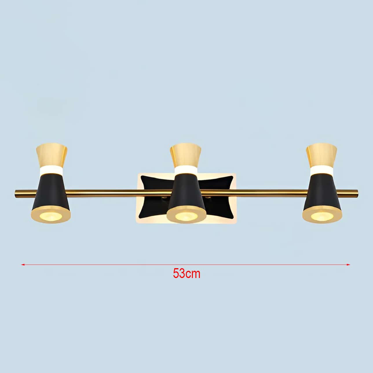 - Đặc điểm : Thân đèn màu vàng + đen. Đèn có 3 bóng. Các bóng có thể điều chỉnh hướng chiếu linh hoạt, giúp chiếu và các điểm tạo điểm nhấn, tập trung ánh sáng tốt hơn.