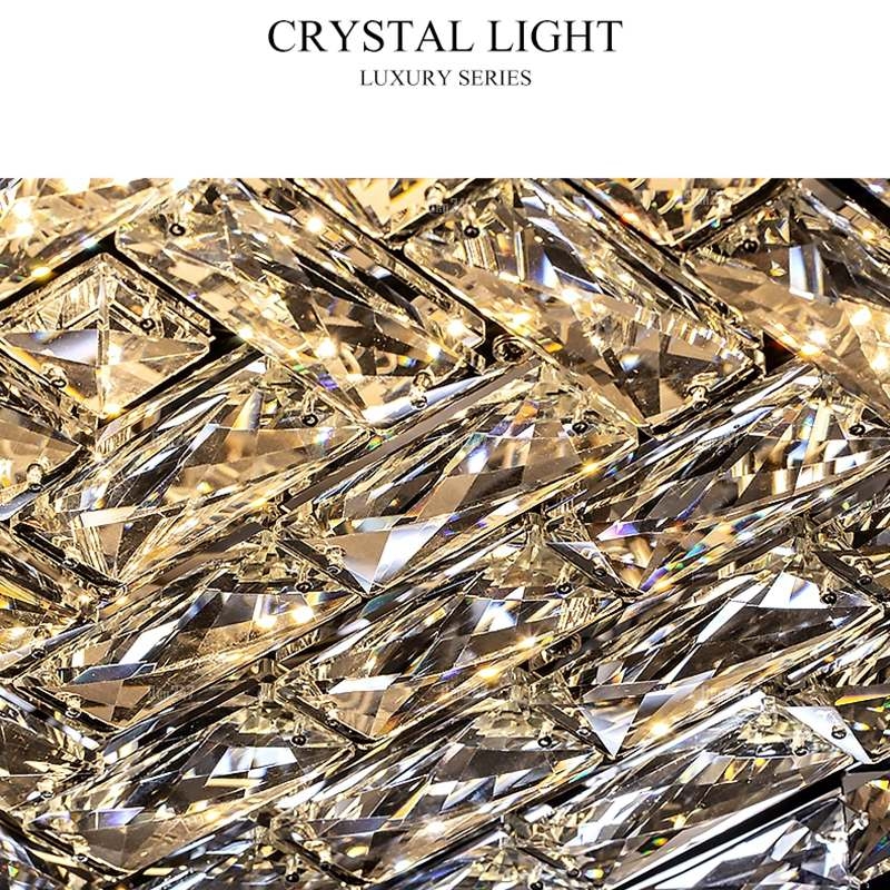 Đặc điểm: Đèn được thiết kế với toàn bộ pha lê bao phủ bên ngoài, không nhìn thấy khung đèn. Đèn giống như 1 khối pha lê lung linh trên trần nhà. Các hạt pha lê K9 được bố trí xung quanh khung hợp kim. Kết hợp với ánh sáng đèn led 3 chế độ tạo nên hình ảnh lung linh phản chiếu lên sàn nhà và trần nhà.