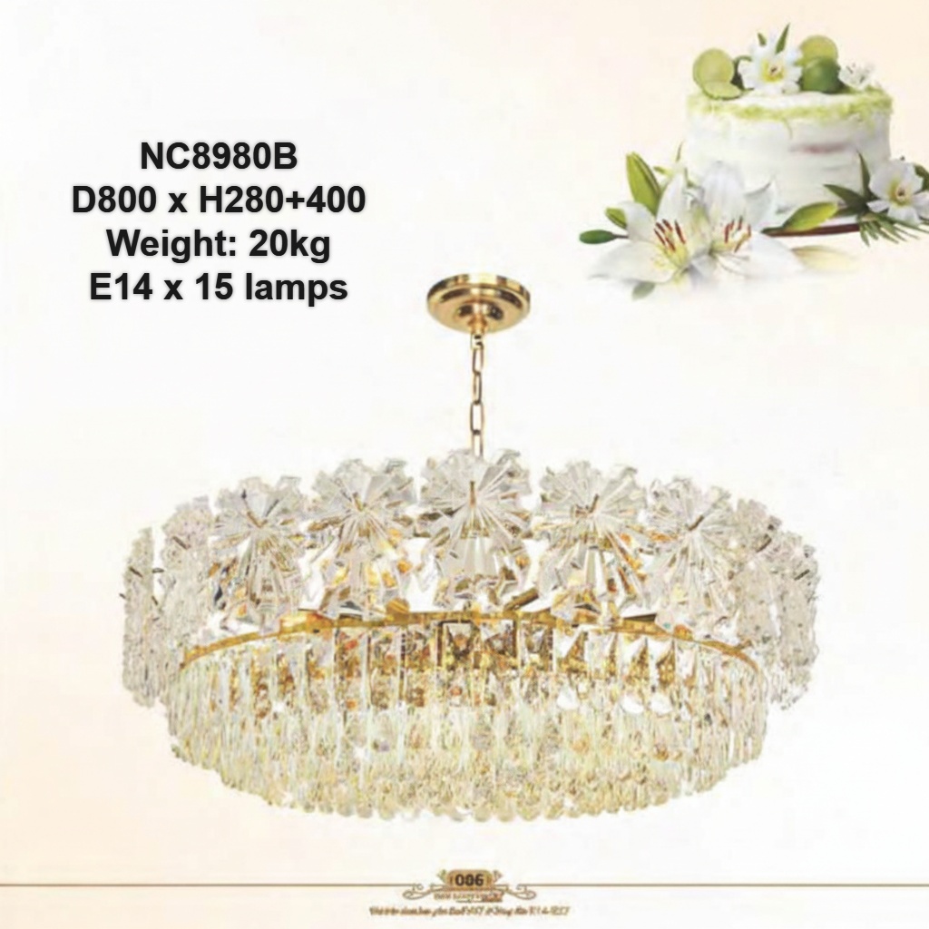 Đèn chùm đồng thủ công chao kính NC8980B