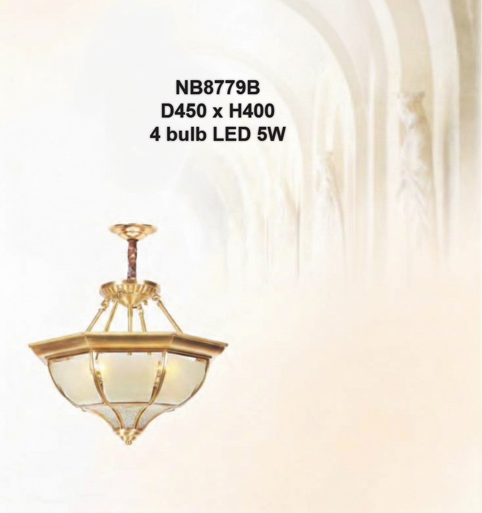 Đèn chùm đồng thủ công chao kính NB8779B