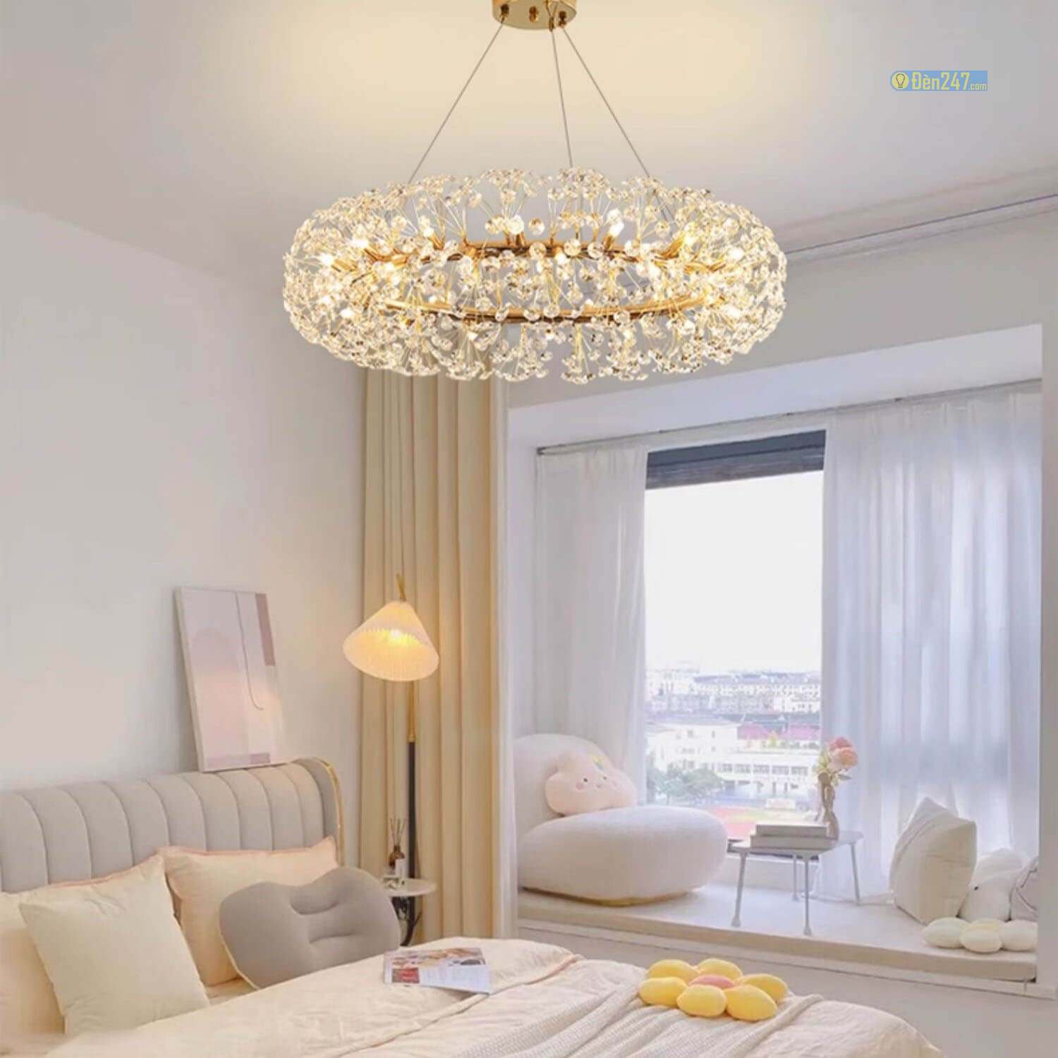 - Chất liệu: Pha lê cao cấp, kim loại chống gỉ