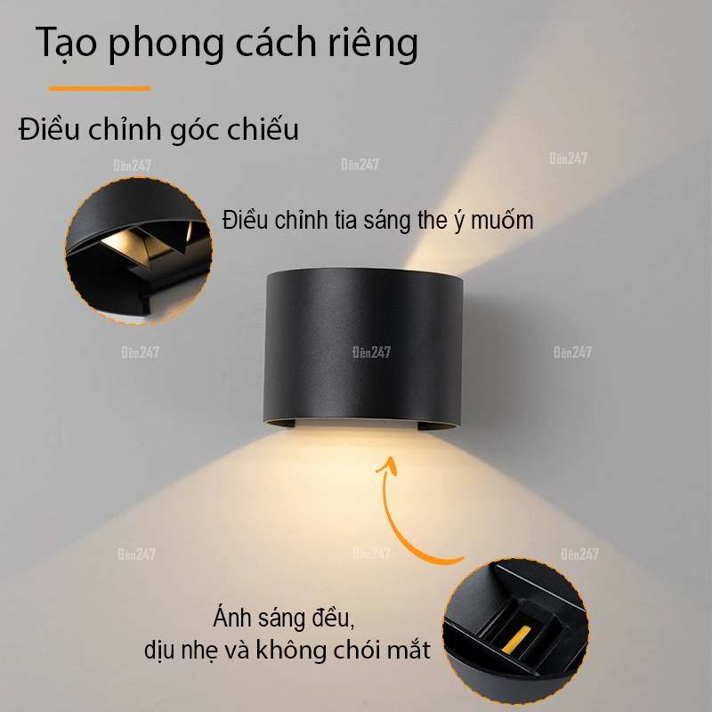 Đặc điểm: Đèn tròn 2 tia sáng, 1 tia hắt trên và 1 tia sáng hắt dưới. Đèn có thể điều chỉnh góc chiếu theo ý muốn. Tạo không gian độc đáo với các góc chiếu khác nhau