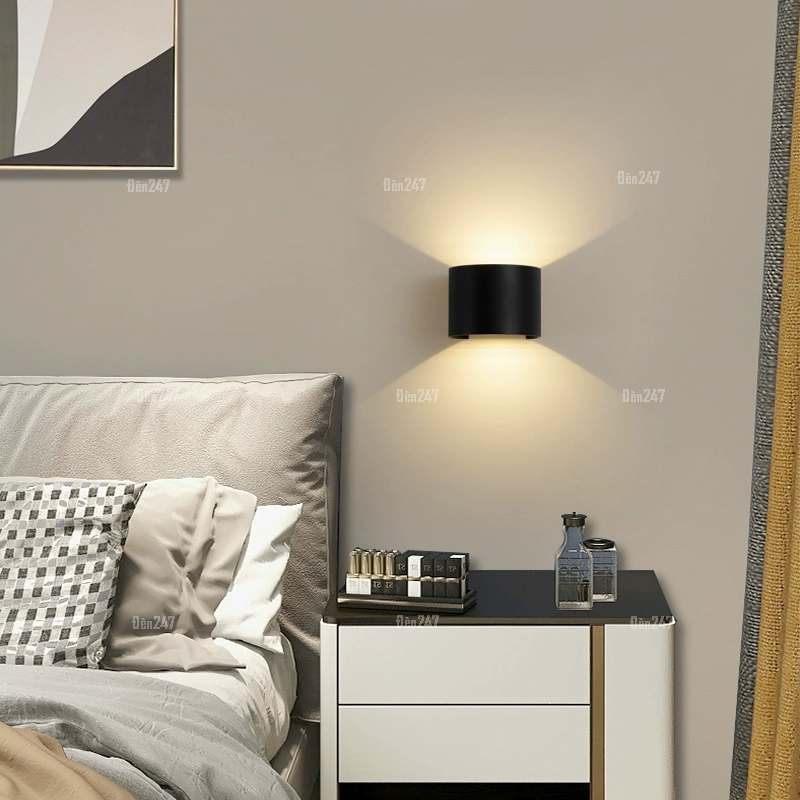 Đèn tường led tròn màu đen điều chỉnh góc chiếu VL-1108/BK
