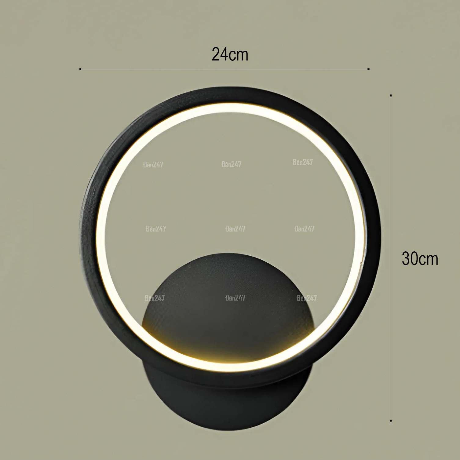 Đặc điểm: Đèn hình tròn màu đen kiểu mặt trăng. Ánh sáng hắt cạnh trong của hình tròn.